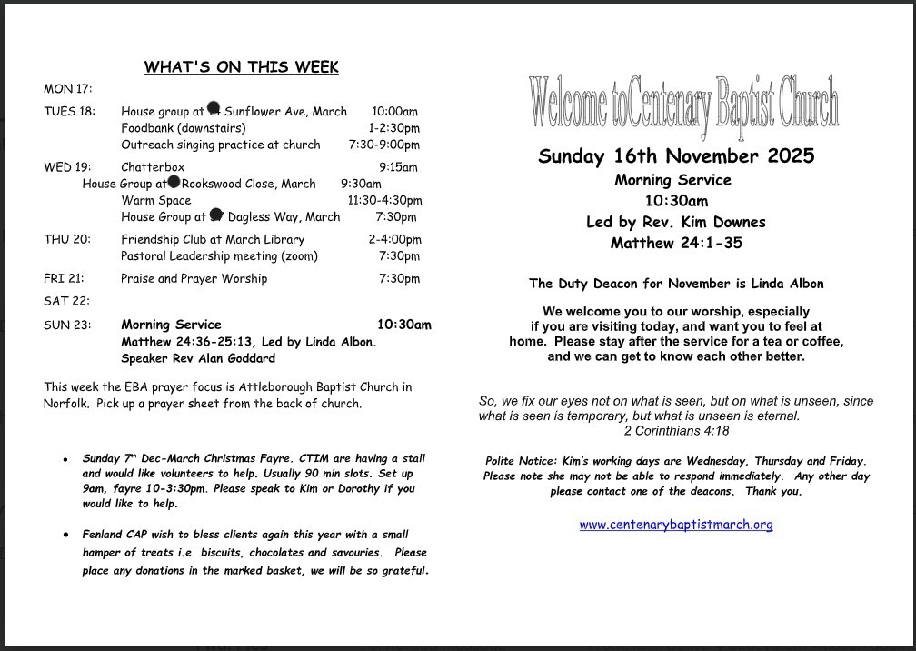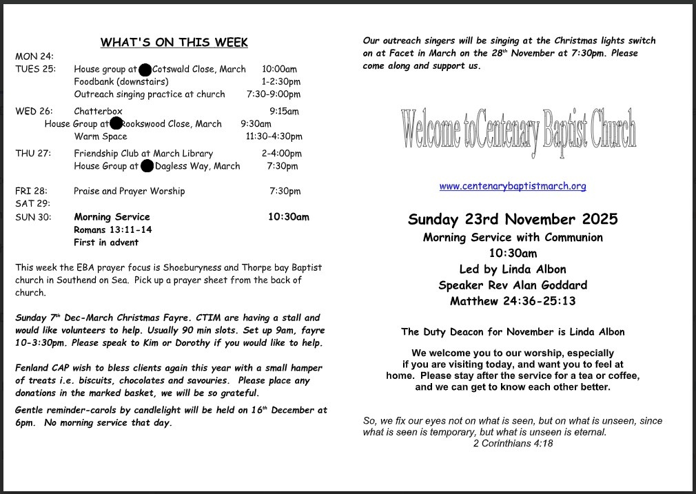 Hello and welcome to our church. If you are a new visitor, we have a page for you to get to know us and learn more about planning a visit.